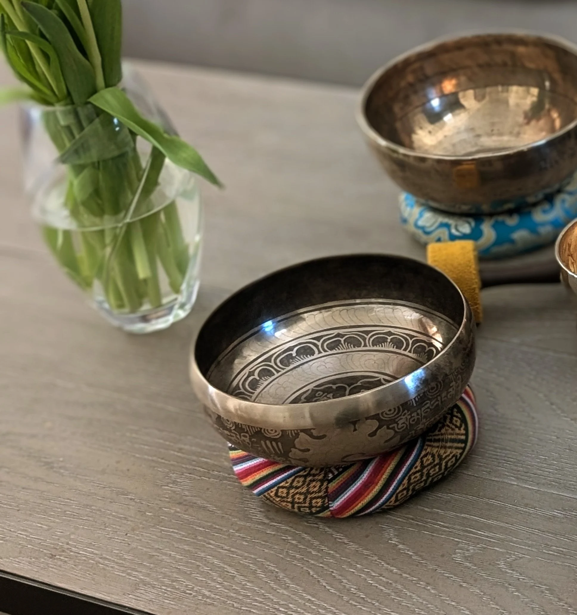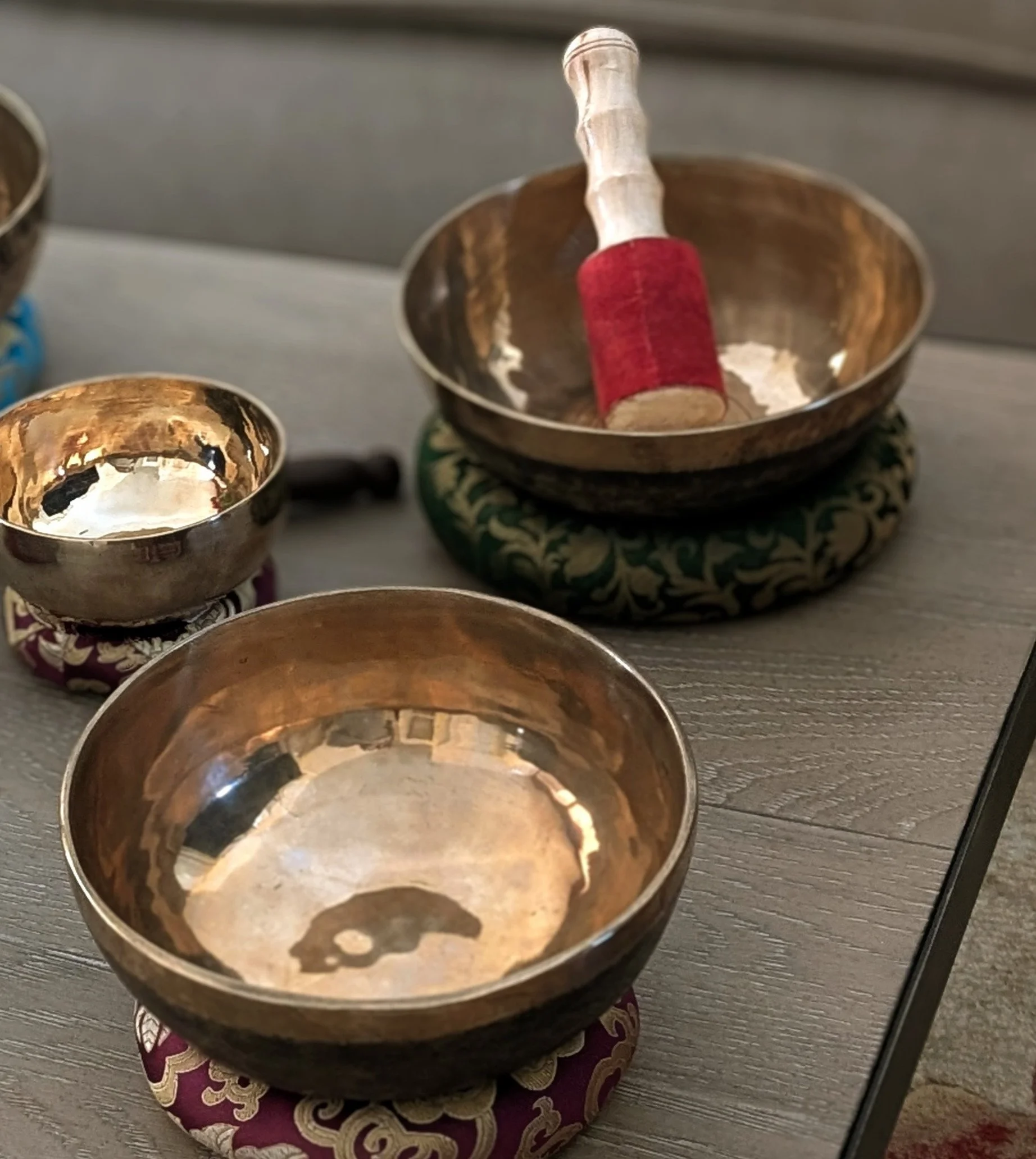 Sound Healing is a therapeutic modality which promotes profound relaxation and healing throughout the body. The mellow tones tap into the “rest and digest” part of the nervous system. The singing bowls’ vibrations decrease heart rate and release tension in the body.